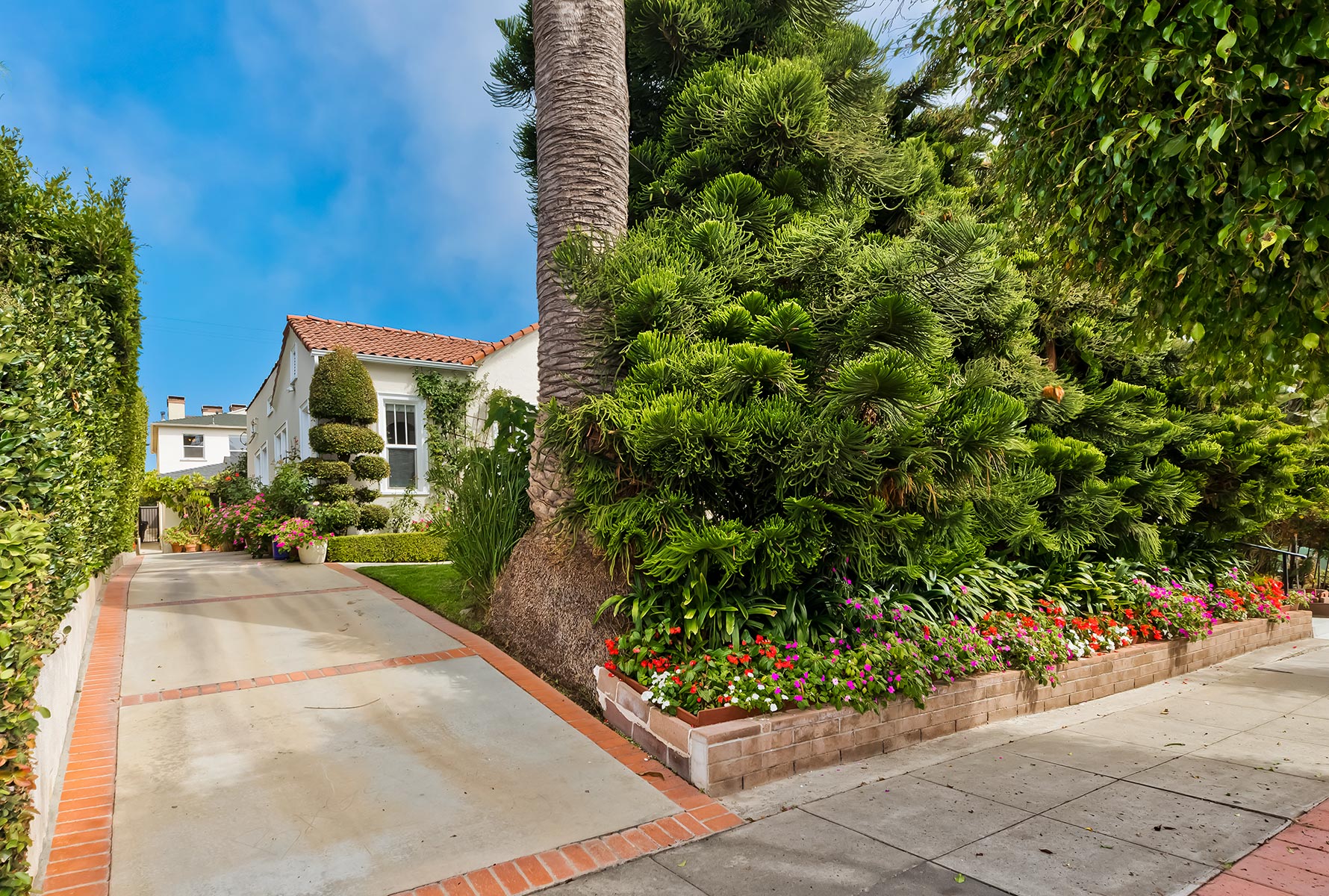 The first building is a traditional Spanish single-story, 3-bedroom*, 1.5-bath home set behind tall landscaping, creating a beautiful, secluded front yard.