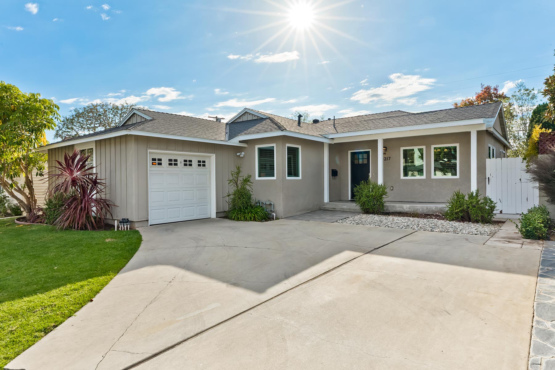 Completely renovated and expanded in 2017, this bright and stylish home blends timeless design with modern comfort. The open living room features gleaming hardwood floors, recessed lighting, plantation shutters, and sliding glass doors that open to a covered patio—perfect for indoor-outdoor living. The gourmet kitchen impresses with white shaker cabinets, quartz countertops, a large center island, and stainless-steel appliances, all open to the dining area for easy entertaining. The spacious primary suite includes a luxurious bath with dual sinks, a stone-tiled shower, and a separate soaking tub. Thoughtfully updated from top to bottom with a new roof, HVAC, electrical panel, tankless water heater, windows, washer, and dryer—all from the 2017 renovation—this home still feels brand new. The large grassy backyard offers room to play, while the detached 1-car garage makes an ideal office or gym. Located on a quiet cul-de-sac near Blanco Park, surrounded by shops and restaurants, and close to both El Rincon and El Marino Elementary Schools—just minutes from everything in downtown Culver City!